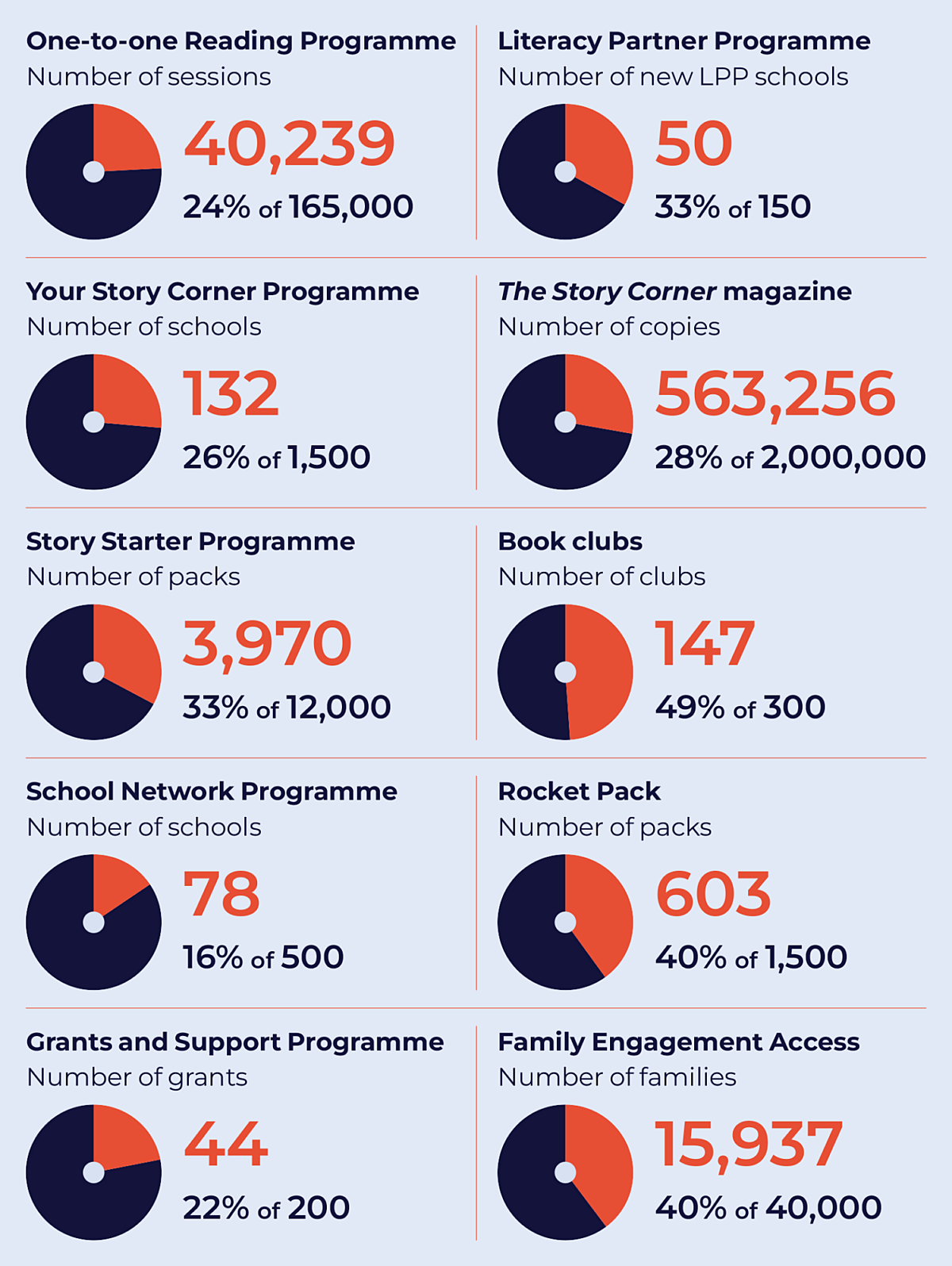 - Delivered 3,970 Story Starter Programme packs, bundles of resources to spark the joy of reading before children start school